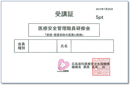 ・広島歯科医療安全支援機構認定歯科衛生士